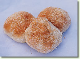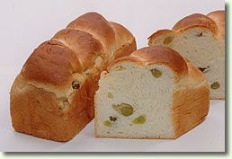 特徴・・・バターの風味豊かなパン生地に丸い粒のままのうぐいす豆を練り込んだブレッドパン。